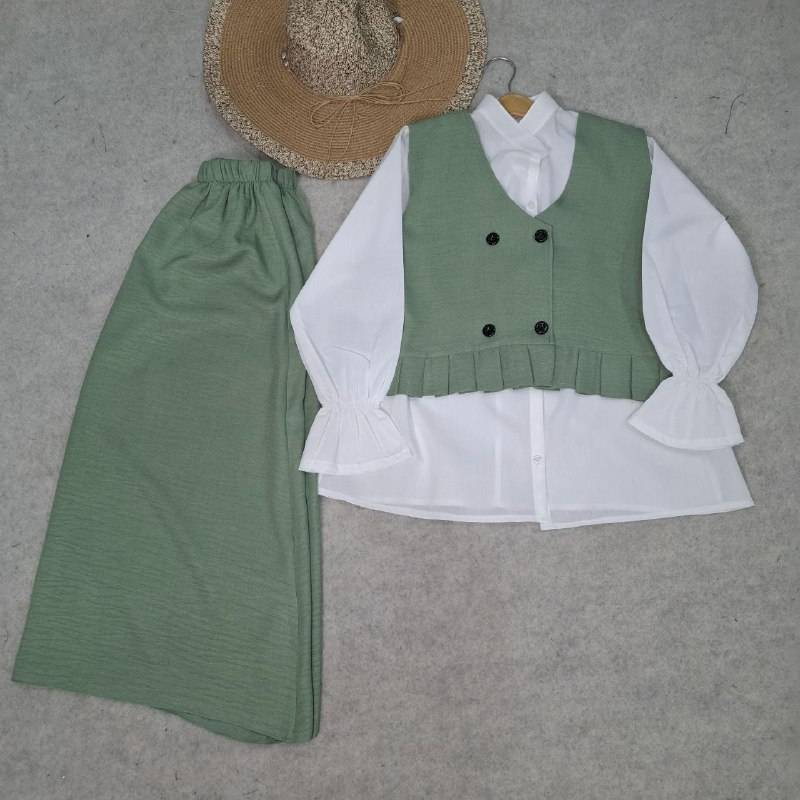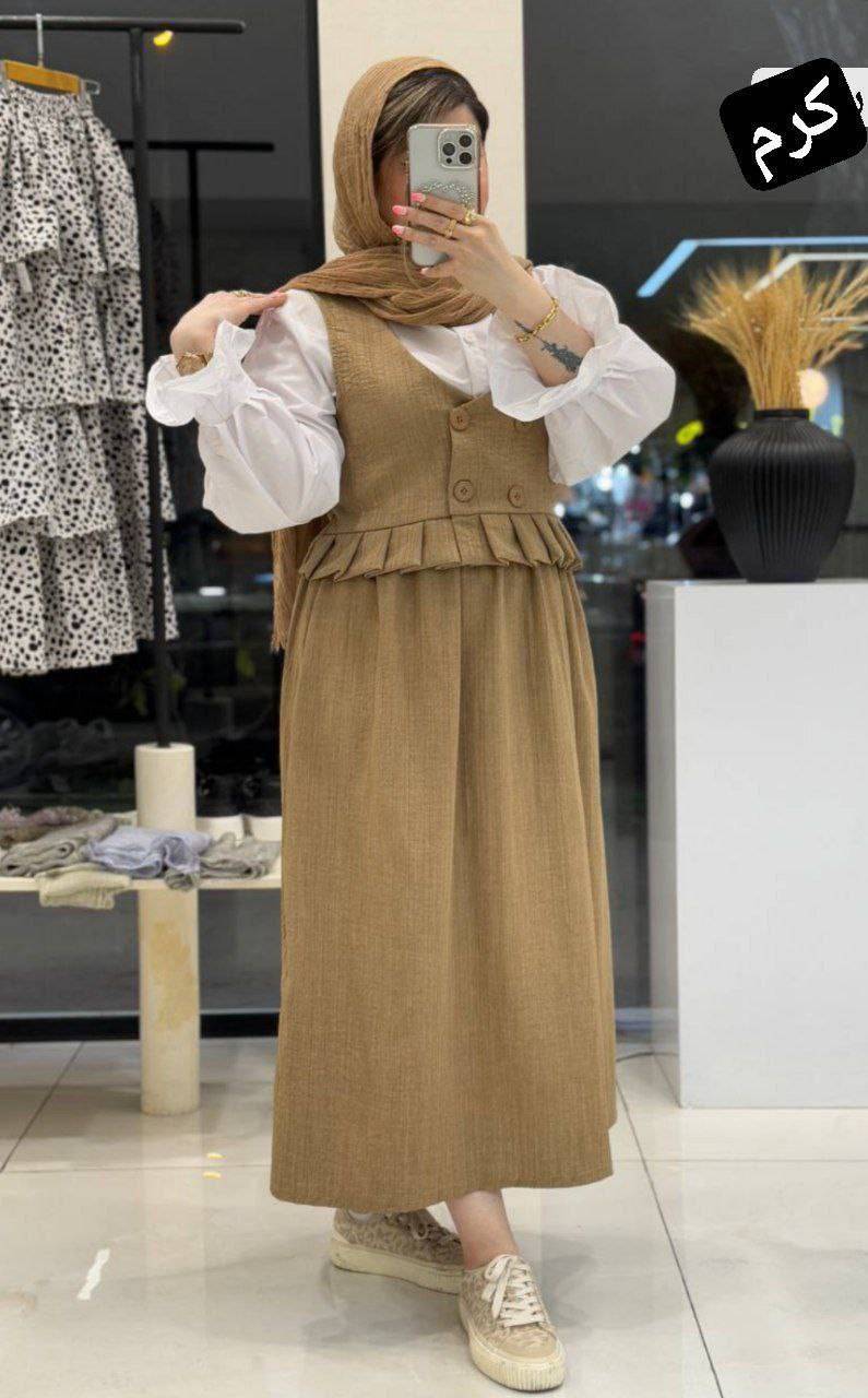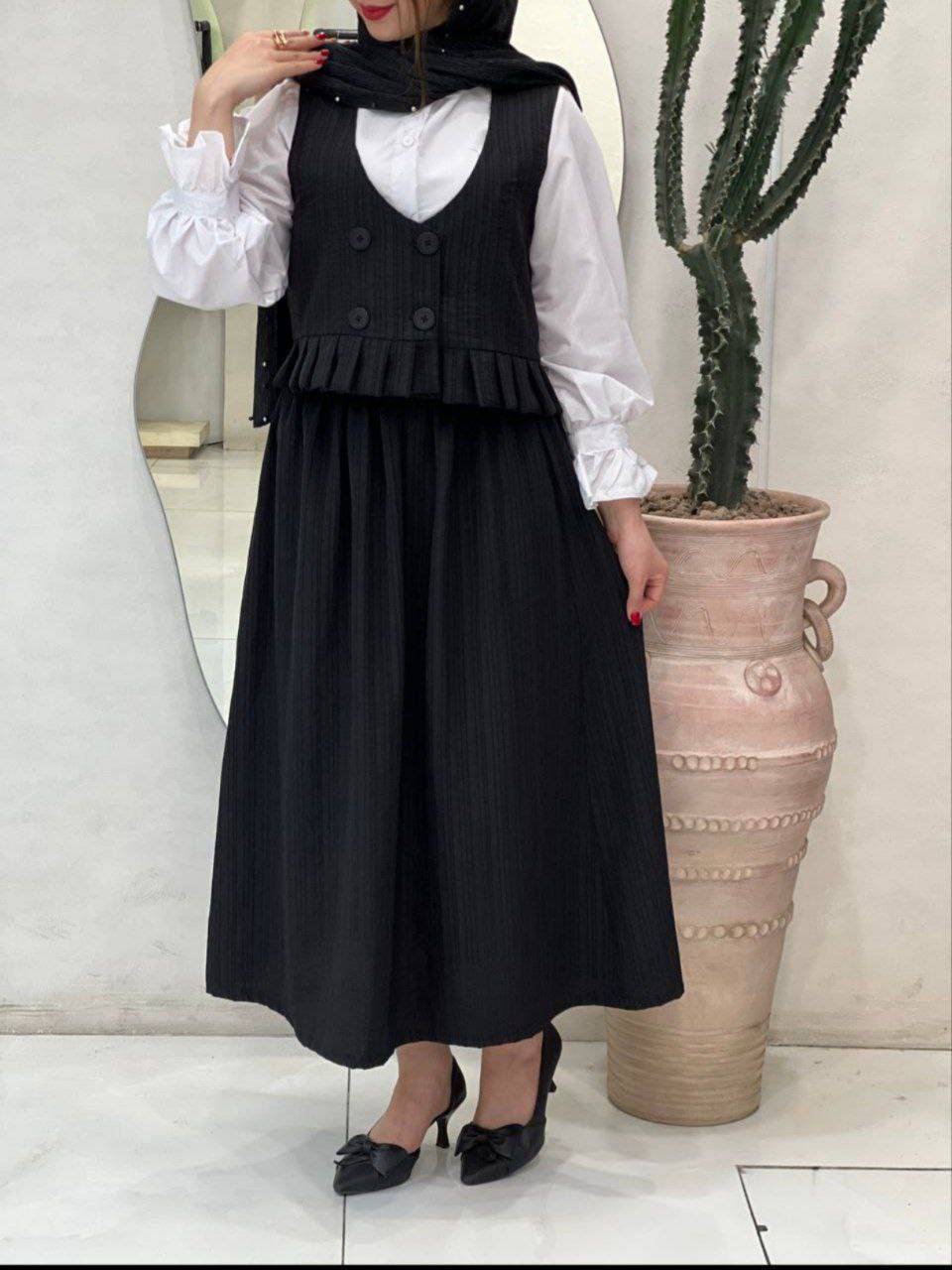 👚 نام : ست سه تیکه عسل✅ 👗 جنس : وست و شومیز شانتون شومیز داکرون ✅ 🖌 رنگ بندی : مشکی, سورمه ای, کرم, طوسی, بنتون, زیتونی✅ 👪 سایز ها : فری تا 48 ✅ ⚜قد شومیز 60 ⚜قد آستین 58 ⚜قد جلیقه 45 ⚜دور سینه 108 ⚜قد دامن 85 ⚜دکمه کاربردی